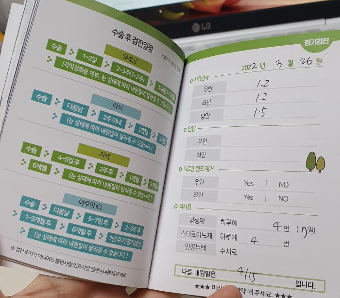 2022.03.27 - [건강] - 대학생의 스마일라식 기록 3 : 완전 자세한 수술 후기 및 수술 직후 눈상태