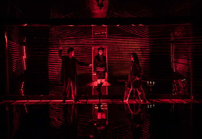 연극에서는 내레이션의 사용 등을 통해 배우가 자신의 역할에서 벗어나 ‘배우’라는 사실을 관객에게 인식시킨다. 또 텍스트를 그대로 가져왔지만, 배우들의 몸을 활용한 퍼포먼스적인 요소를 넣어 소설과 차별점을 둔다. 배우가 실제로 무대 위에 존재한다는 것을 실감하게 하고, 연극에 기이한 분위기를 더하며 관객이 줄거리에 몰입하기보다는 한발 떨어져 생각하게 한다. 현대 문명과 그 속에서 사는 인간들의 모습에 대해 고민하게끔 하는 것이다. 덧붙이자면 극의 구성이 에피소드 형식이라는 것도, 같은 배우가 다른 역할로 바뀌는 것을 계속 목격하게 함으로써 ‘하나의 줄거리’에 몰입하는 것을 방해한다고 볼 수 있다.