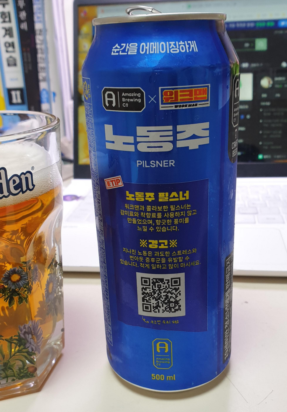 사실 그 이유만을 사긴 했는데... 나중에 보니 감미료와 착향료를 전혀 사용하지 않았다는 문구도 마음에 들었다. 물론 감미료와 착향료 자체가 나쁜 것은 아니며 그런 향을 더 집어넣어서 더 맛있어지는 맥주도 충분히 존재하겠지만... 편의점 캔맥들은... 감미료를 넣으면 보통 묘하게 인위적이고 향수같아지는 경우가 너무 많았어서.. 약간 안심이 되는 문구였다. '흠 적어도 액체비누 마시는 기분은 안 들겠구만'이라는 생각을 가져다주는 그런 문구.