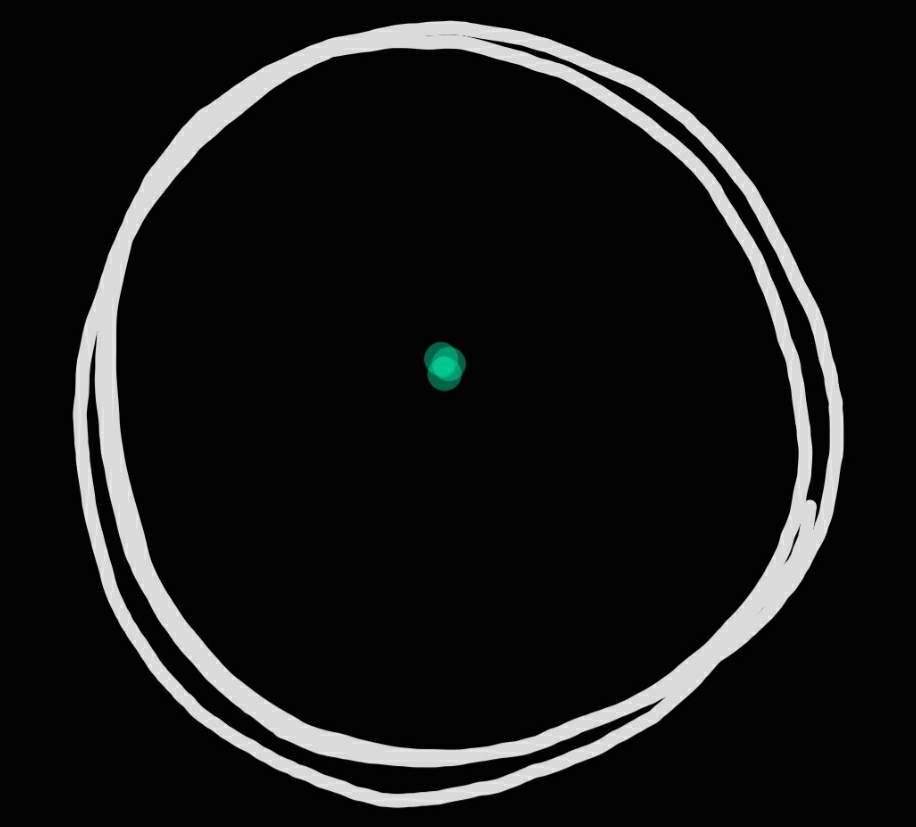 <그림2> : 구 두 개의 접촉이 2차원에서 인식될 때의 모습은, 그저 원 두 개의 만남이다. 우리는 다른 사람과 관계를 형성할 때, 지금 보이는 그 사람의 모습이 전부라고 생각한다. 하지 만 이는 사실 우리가 모두 ‘구’와 같다는 본질을 잊어버린 태도이다.