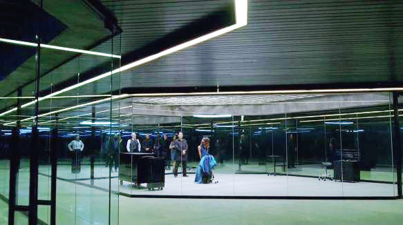 연극에서는 내레이션의 사용 등을 통해 배우가 자신의 역할에서 벗어나 ‘배우’라는 사실을 관객에게 인식시킨다. 또 텍스트를 그대로 가져왔지만, 배우들의 몸을 활용한 퍼포먼스적인 요소를 넣어 소설과 차별점을 둔다. 배우가 실제로 무대 위에 존재한다는 것을 실감하게 하고, 연극에 기이한 분위기를 더하며 관객이 줄거리에 몰입하기보다는 한발 떨어져 생각하게 한다. 현대 문명과 그 속에서 사는 인간들의 모습에 대해 고민하게끔 하는 것이다. 덧붙이자면 극의 구성이 에피소드 형식이라는 것도, 같은 배우가 다른 역할로 바뀌는 것을 계속 목격하게 함으로써 ‘하나의 줄거리’에 몰입하는 것을 방해한다고 볼 수 있다.
